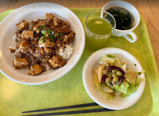 ※社員食堂でいただいた麻婆丼。受講者の方たちとランチをご一緒してきました。